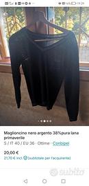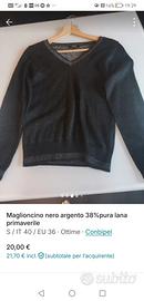 Maglioncino donna scollo a V,nero e argento, cotone e viscosa,marca Conbipel taglia S, senza difetti!