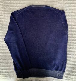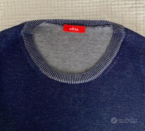 taglia SMALL (vestibilità abbondante), ottimo stato, cotone 100%, colore blu con effetto melange.