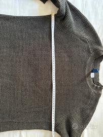 Maglione uomo H&M Divided leggero a girocollo, realizzato in cotone 100%, colore verde scuro militare. Tessuto lavorato con effetto nido d’ape, ideale per chi cerca una maglia uomo leggera e comoda. Taglia dichiarata XS, ma veste come una S uomo.