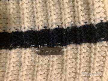 Morbidissimo maglioncino in lana. Originale Patrizia Pepe. Uitlizzato pochissimo. Colore: panna e blu Taglia : 10 anni