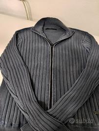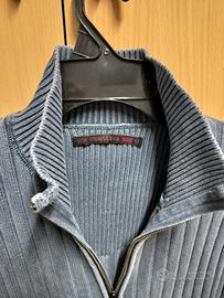 Maglioncino da uomo in cotone con chiusura a zip blu navy.