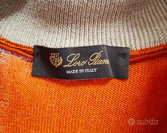 Maglioncino arancione da uomo, in seta, firmato Loro Piana originale, taglia 50, con colletto a zip e bordini chiari. Ottime condizioni.