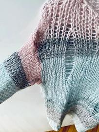 Maglioncino in lana e mohair Motivi. Colori delicati pastello: rosa,celeste e grigio chiaro. Ottime condizioni, tenuto con cura.
