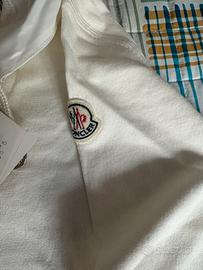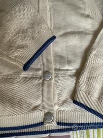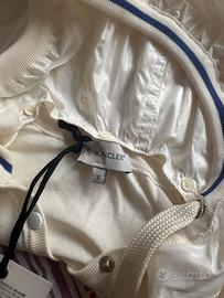 Stupendo maglioncino leggero Moncler 100% cotone color panna. Apertura con bottoncini con logo. Due taschine laterali sul davanti e cappuccio regolabile e staccabile in nylon. Rifinitura con bordini viola sul fondo, maniche e bordo del cappuccio. Taglia S. Nuovo, con cartellino e confezione originale, ma di una collezione vecchia. Possibilita’ di consegna a mano su Milano/Parma. #maglioncino #golf #moncler #cotone #cardigan