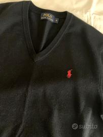 maglioncino scollo a V della polo ralph lauren, di colore blu, pari al nuovo