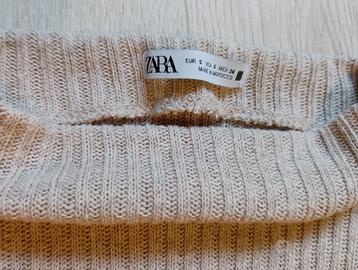 Maglioncino smanicato beige di Zara, modello leggero e a coste, con collo leggermente a dolce vita. Taglia S, in ottime condizioni. Perfetto da abbinare a leggings o jeans per un look semplice ma curato. Colore neutro, versatile e ideale per la mezza stagione.