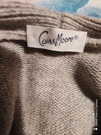 Maglione vintage in pura lana cachemire 100%, oggi raro, della prestigiosa casa di maglieria italiana Cains Moore, caldo e morbidissimo. Caratterizzato da collo a sciarpa e da una minuta e tenue fantasia su fondo grigio chiaro. Misura originale 54 .Le misure sono: spalle 51, lunghezza 72, maniche 63 ( adatto per una persona alta). Indossato solo in un paio di occasioni, come nuovo