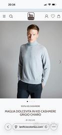 Vendo questo maglio collo alto 100% cashmere perché mi veste piccolo ormai. Taglia del capo 52 ma consiglio per chi indossa una 50. Materiale al tatto spettacolare, maglione di un certo valore economico (allego la foto del sito ufficiale) che infatti spiace vendere ma almeno qualcuno lo puó ancora indossare perché in condizioni come negozio ancora.