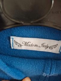 Vendo un maglione da donna usato di colore blu con collo alto e linea centrale,maniche lunghe,orlo a costine,spacchi laterali,tessuto morbido,taglia M.Made in Italy.