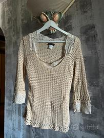 Splendida maglia/maglioncino leggero del brand italiano STOOP!, color crema/avorio. Un pezzo unico che unisce lo stile romantico a quello vintage.