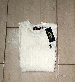 Maglione bianco a trecce della Polo Ralph Lauren Taglia M Nuovo con cartellino Spedizione veloce