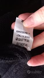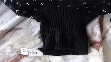 Maglione nero lungo tipo abito con fantasia invernale in bianco. Mai usato, ancora con cartellino. Maglione a collo alto : misure collo 24cm larghezza, 19 cm altezza. Lunghezza maniche 62 cm. Non è presente la taglia ma la vestibilità è per una taglia M (o S se amate i maglioni comodi). Marca: Italy Moda.