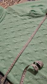 maglione fatto a mano verde menta ( materiale sintetico) Mai usato. Dimensioni visibili nelle foto.