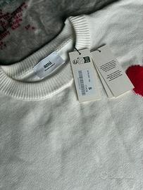 maglione AMI bianco con cuore rosso