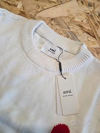 maglione Ami Paris bianco righe nere e iconico cuore rosso taglia M unisex mai indossato, nuovo spedisco in 24/48h