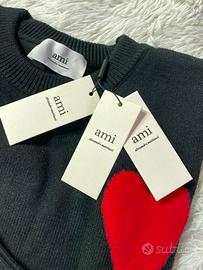 🔹 AMI PARIS BLACK SWEATER (RED HEART) – NEW