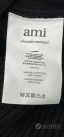 Iconico maglione AMI de Coeur nero con logo cuore rosso ricamato sul petto. Un capo must-have, elegante e versatile, perfetto sia per look casual che più curati.