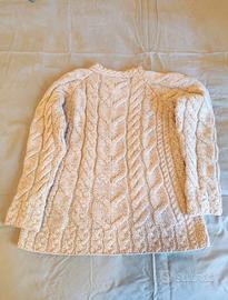 Maglione Aran woollen Mills venduto da Lize'. APPENA Acquistato usato, mi va grande. Solo provato. La precedente proprietaria l'ha usato una volta e mai lavato. È in condizioni perfette e di una morbidezza estrema, caldissimo. Misure in foto. Modello sfiancato, io porto la taglia 42 e mi va morbido non aderente. Bellissimo colore beige sabbia. Prezzo di vendita nuovo 130€.