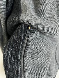 Maglione Armani Exchange grigio, taglia L. Collo alto con zip e dettagli in metallo. Logo Armani Exchange stampato in nero sul petto e sulla manica. Realizzato in lana e cotone, con lavorazione a coste sulle maniche e sul collo in contrasto grigio scuro. Stile moderno, in perfette condizioni, senza macchie o danni.