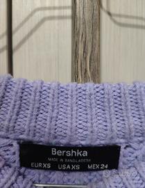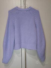 Maglione color lilla/lavanda. Lavorazione a maglia spessa. Girocollo, polsini e fondo a costine. Vestibilità leggermente oversize sulle maniche. Molto caldo. Veste tranquillamente anche S.