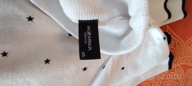 Maglione con collo dolcevita con motivo a stelline sul davanti. Modello corto in viscosa. Usato un paio di volte.
