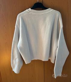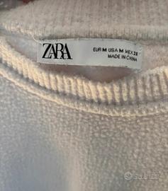 Maglione bianco di Zara, perfetto per un look casual ma raffinato. Realizzato in un tessuto morbido e caldo, ideale per le mezze stagioni e l’inverno. Vestibilità comoda e facile da abbinare con jeans o gonne. In buono stato, con una piccola macchia che si sta attenuando lavaggio dopo lavaggio (vedi foto).