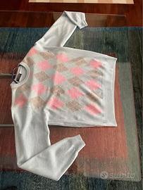 Vendo maglione brand Bramante mai indossato taglia L colore azzurro con rombi rosa e marroni quindi nuovo Per informazioni non esitate a contattarmi