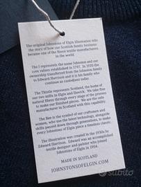 Vendo per taglia errata maglione 100% cashmere a filo lungo, made in Scotland Johnston of Elgin taglia XL. Colore blu navy. Marchio per intenditori, top del lusso. Unico maglificio verticale di Scozia. Nuovo mai indossato, ancora con cartellino originale. Prezzo in boutique € 625, cedo a metà prezzo €310.