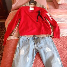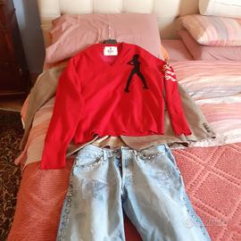 Vendo maglione unisex in Cashmere scollo a V tg50 marcaDuke rosso con ricamo silouette donna pezzo unico di campionario usato 3 volte in 3 sfilate