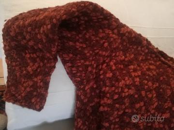 Maglione fatto a mano a ferri. Melange di colori dai toni del bruciato /corallo/albicocca. Scollo a barchetta, maniche lunghe. Morbido. Ottima vestibilità per la sua forma.