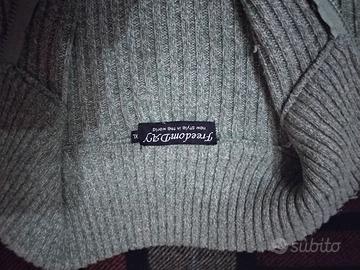 Maglione da uomo con apertura e zip sul davanti. Taglia XL, colore verde. 70% lana e 30% acrilico. 6,00 euro.