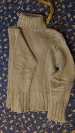 maglione lavorato a trecce, beige, con collo taglia L