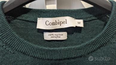 Maglione Conbipel originale, girocollo, in 100% lana merino extrafine (come da etichetta in foto). Colore verde scuro, elegante e facile da abbinare, perfetto sia per uso quotidiano che per ufficio.