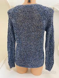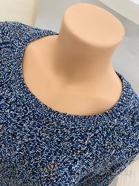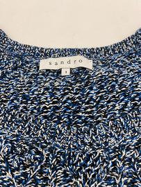 Maglione lavorato a maglia con scollo tondo, multicolor (blu, nero, bianco), 100% cotone, marchio Sandro, tg 1 (corrisponde a una Small). In condizioni perfette, ideale per le mezze stagioni.