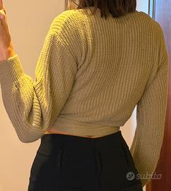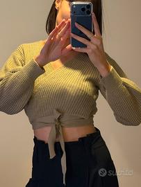 Vendo maglione crop con scollo a V incrociato e laccio in vita da annodare.