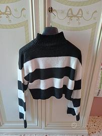Maglione crop da donna, marca Tally Weijl, marca M, in ottime condizioni, a righe bianche e nere.