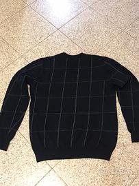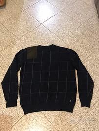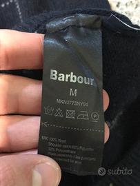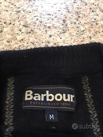 Splendido maglione di lana Barbour a girocollo color blu scuro con rifinitura laterale in camoscio,indossato poco e tenuto in ottime condizioni adatti per uno stile sportivo elegante