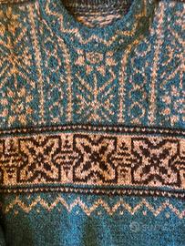 Maglione stile norvegese, in pura lana vergine, fatto a mano. TgXL