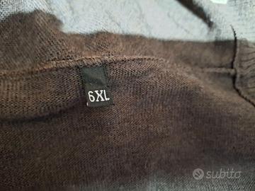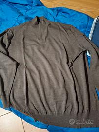 Maglione da uomo di pura lana vergine merino modello lana pettinata con mezza zip colore marrone, taglia grande 6XL indossato un paio di volte, pari al nuovo...