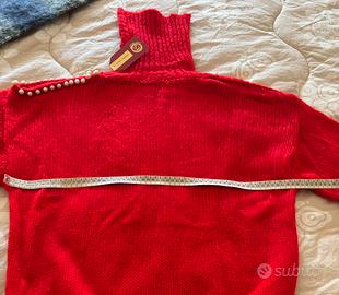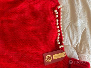 Maglione donna rosso dolce vita con perline bianche sulla spalla