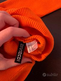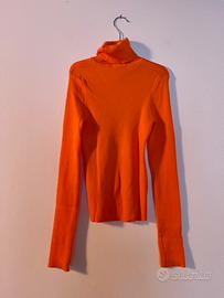 Maglione dolcevita arancione H&M Divided, taglia S. A maniche lunghe e collo alto, in tessuto a costine. Usato poche volte, in ottime condizioni. Morbido e confortevole grazie al mix di viscosa, acrilico e poliammide. Perfetto per dare un tocco di colore ai look invernali.