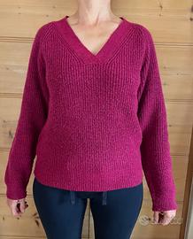 Vendo questo bellissimo maglione, scollo a V, colore fucsia, taglia 38/40 (XS/S), materiale poliestere, vestibilità comoda, misure nelle foto, ottime condizioni perché indossato solo poche volte.