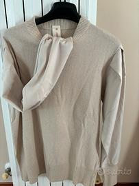Maglioncino in lana pertinata, caldo, ma non ingombrante. Elegante, maniche in tessuto, leggermente a palloncino. Elena Ferrante, taglia 46.
