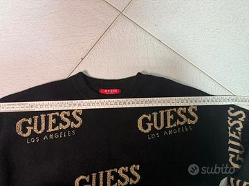 Maglione donna Guess Mai indossato ma senza cartellino Girocollo Fondo nero con logo nel colore beige e glitterato in oro Misura S in viscosa