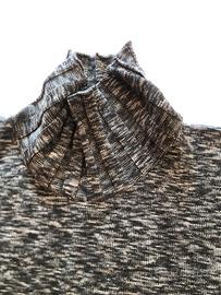 Elegante e caldo maglione in pura lana merino extrafine Soft Tricot, made in Italy. Tessuto morbido e confortevole, di qualità superiore, ideale per la stagione fredda. Colorazione mélange grigio scuro con effetto sfumato. Modello a collo alto con lavorazione a coste sul collo, sui polsini e sull’orlo inferiore. Vestibilità ampia e comoda, adatta a taglia L/XL. 🔹 Materiale: 100% lana merino extrafine 🔹 Colore: grigio mélange 🔹 Taglia: L/XL 🔹 Condizioni: ottime, senza difetti né segni di usura 🔹 Made in Italy Perfetto per un look casual chic o per tenersi al caldo con stile durante l’inverno