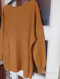 Vendo maglione femminile in lana, color senape, indossato pochissime volte, praticamente nuovo. Lavorazione a treccia, taglia XL.