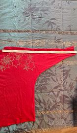Elegante maglione da donna con un vivace colore rosso acceso. Presenta un'applicazione di stelle scintillanti sul davanti, che aggiungono un tocco di originalità.