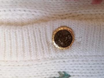 Maglione donna modello cardigan, con inserti floreali e bottoni particolari.