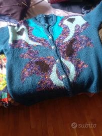 maglione lavorato a mano.con intarsi usato pochissimo però l etichetta purtroppo non c'è più la taglia direi che è una XXL se interessati posso fornire le misure in cm.