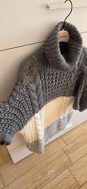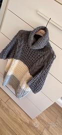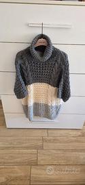 Maglione da donna perfetto per la stagione autunnale e invernale. Il capo presenta un design color block a tre fasce orizzontali: grigio scuro nella parte superiore con collo alto lavorato a coste, panna al centro con motivo a nido d’ape, e grigio chiaro nella parte inferiore con dettagli a treccia. Le mezze maniche aggiungono un tocco moderno e versatile, ideale sia per outfit casual che più ricercati. Taglia: unica Materiale: maglia morbida e calda, con lavorazioni a rilievo Collo: alto, avvolgente e strutturato Maniche: corte, a metà braccio Vestibilità: comoda ma sagomata, valorizza la figura Condizioni: ottime Perfetto da abbinare a jeans skinny, pantaloni eleganti o gonne midi. Un capo unico per chi ama lo stile sofisticato con dettagli. € 22 Ritiro in zona tiburtina e piu precisamente in via tancredi cartella altrimenti spedizione con il servizio che il sito stesso mette a disposizione degli utenti